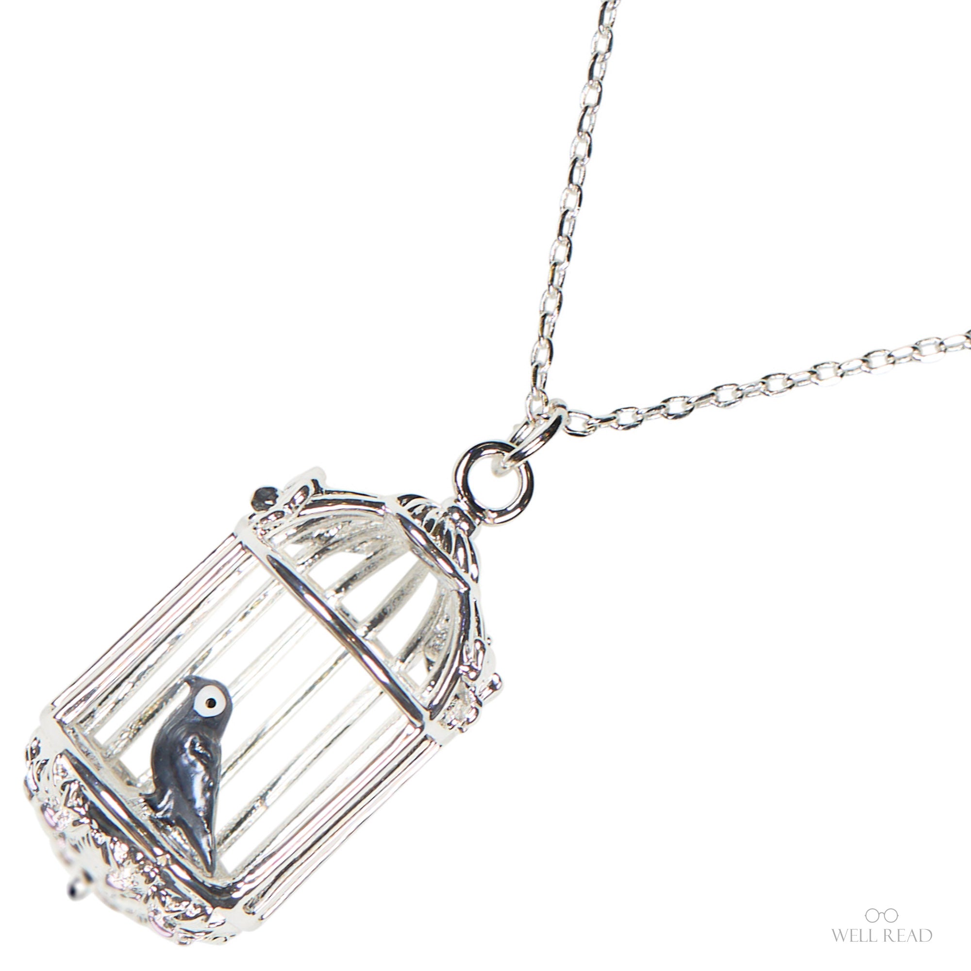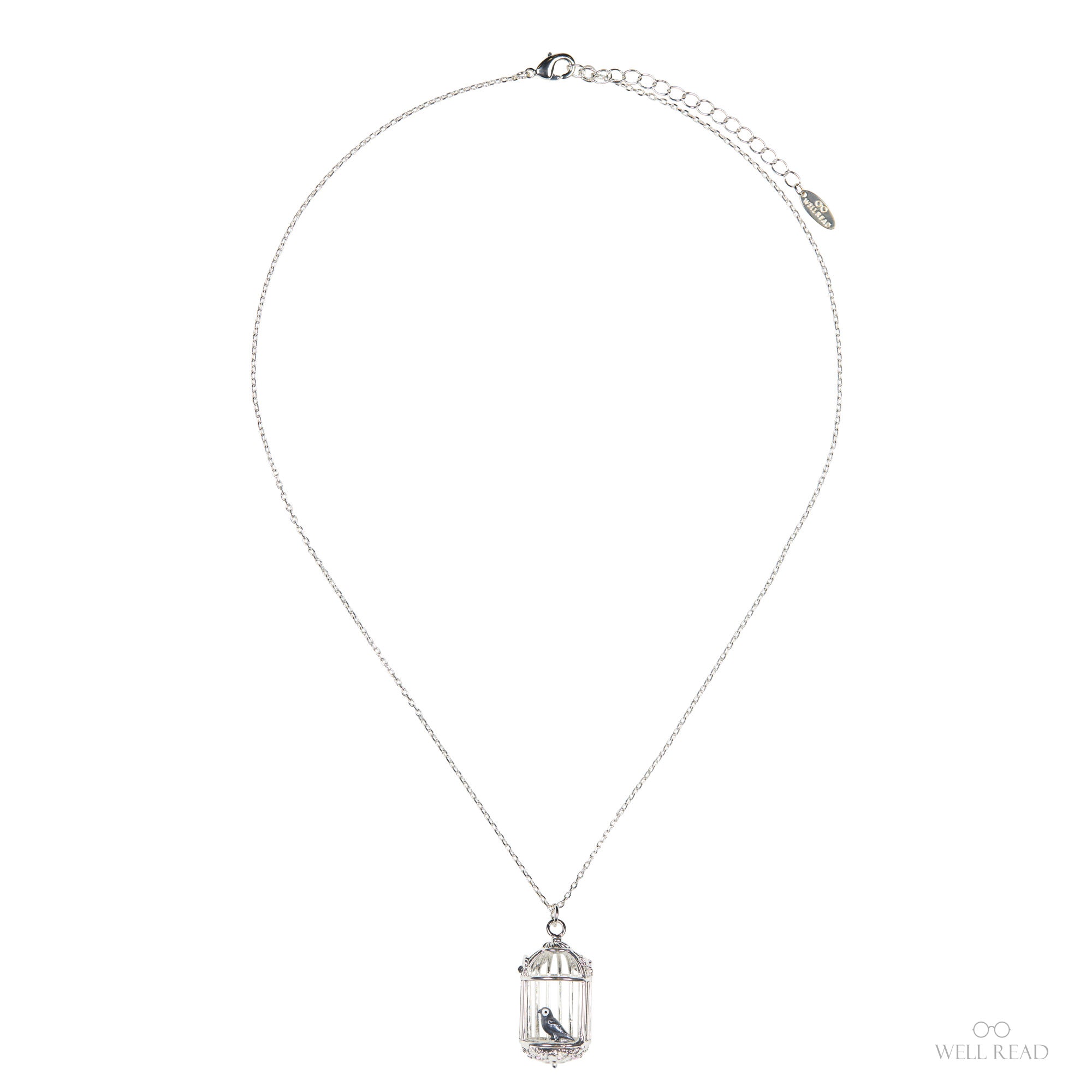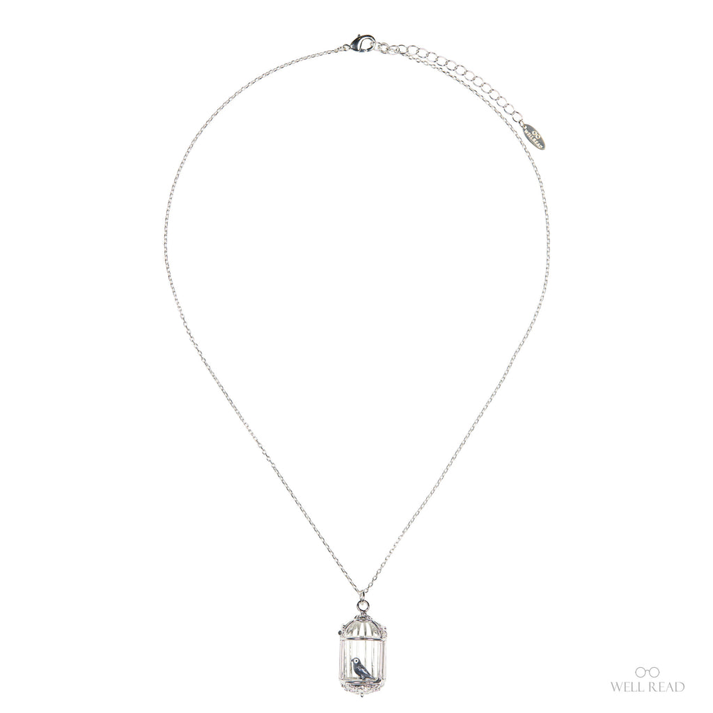 The pendant’s filigreed bars and domed top evoke Victorian ornament, while the little bird suggests resilience, self-possession, and the pull between confinement and freedom at Thornfield. Suspended from a lightweight, adjustable silver chain, it layers beautifully and sits comfortably for all-day wear—equally at home with a high-collared blouse or a cozy knit.
