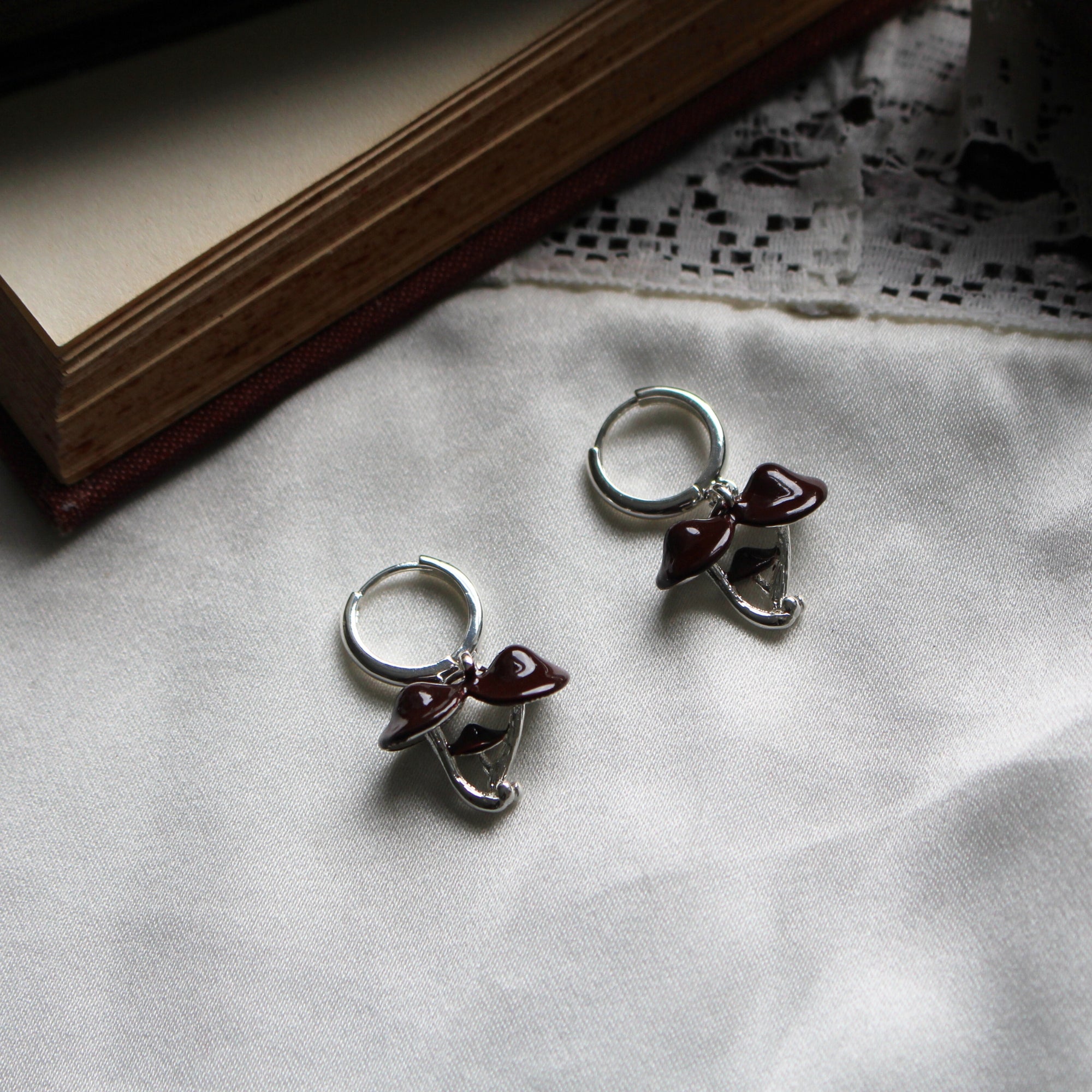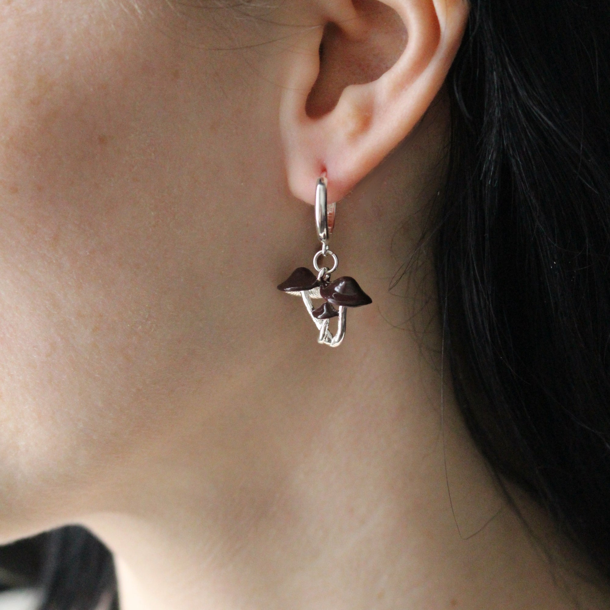 Sculpted silver stems and smooth enamel domes create a soft, polished look. The charm swings from a slim, comfortable hoop for easy everyday wear—lightweight yet eye-catching, bringing cozy forest vibes to everything from chunky knits to slip dresses and tees.
