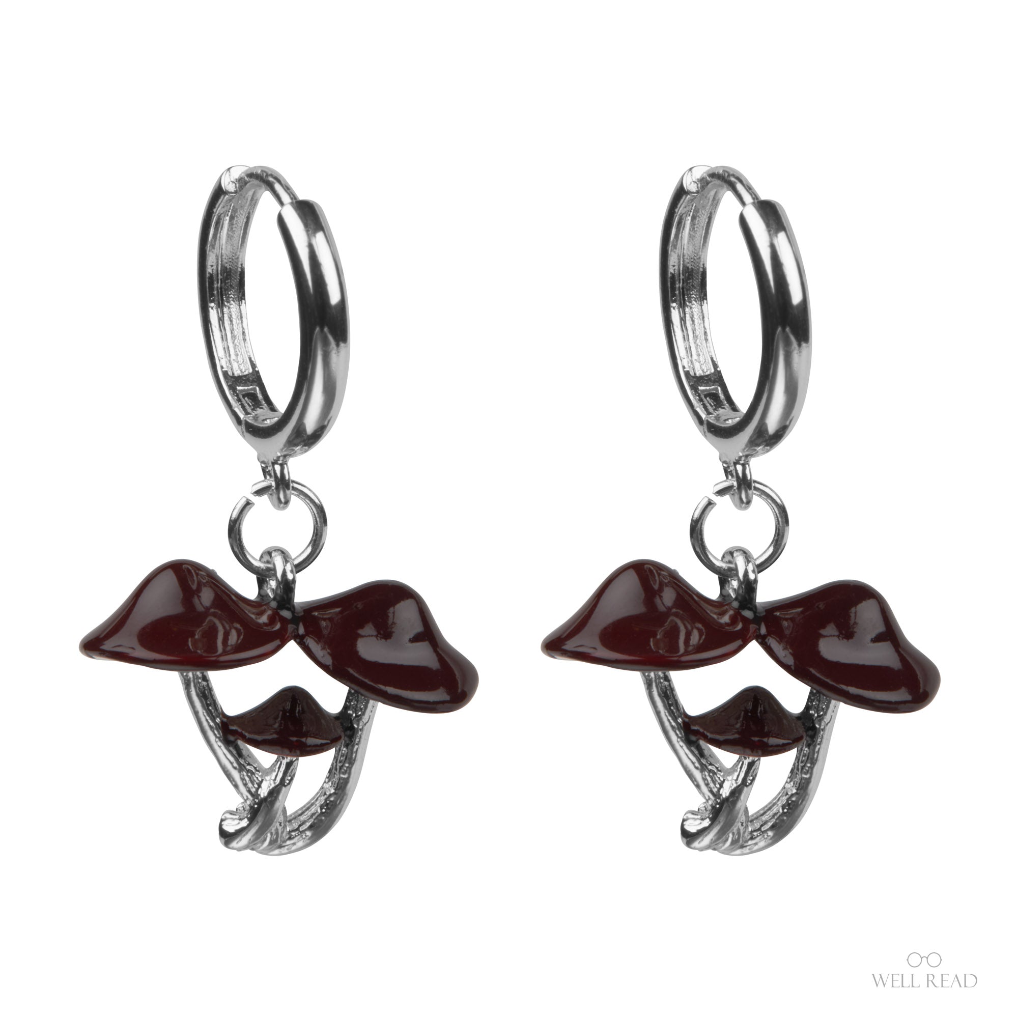 Secrets of the Forest Floor Mushroom Silver Bookish Pendant Earrings