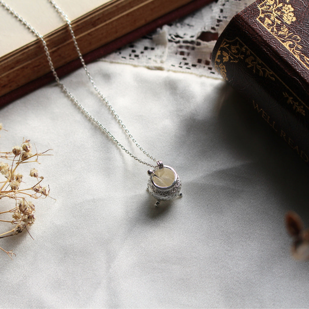 Introducing our The Encyclopedia of Potion Making silver cauldron pendant necklace, a bookish homage to wizard apothecaries and the hush of stone-walled classrooms where vials clink and steam curls above ink-stained notes. It nods to classic school-of-magic tales while celebrating the quiet craft of careful brewing.