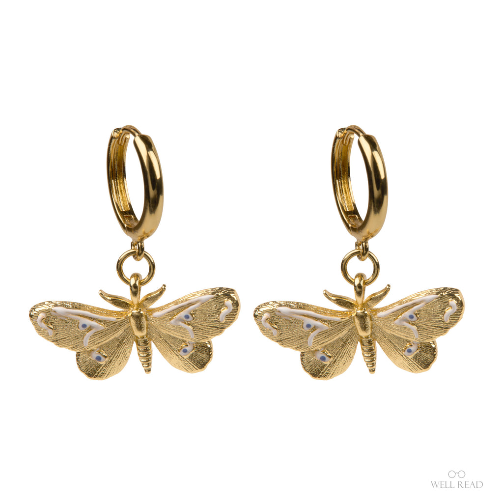 Moths and Butterflies Gold Bookish Pendant Earrings