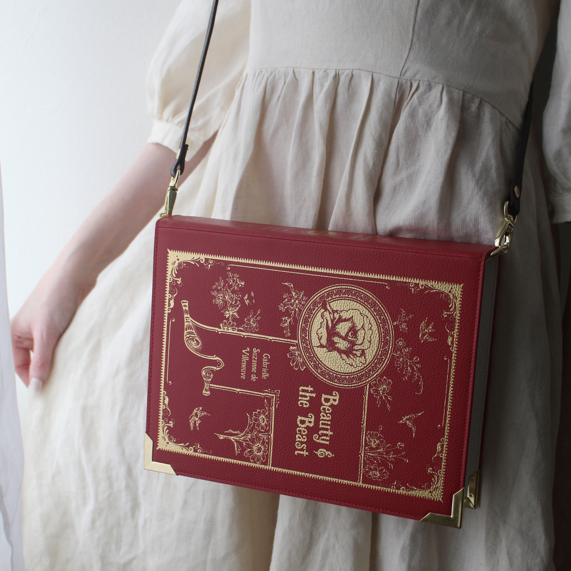 Luxury Gold Foiled Beauty and the Beast Book Handbag Crossbody Purse